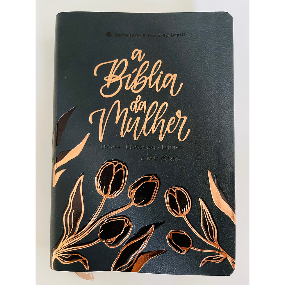 Biblia da mulher, estudo devocional NAA capa branca tulipa